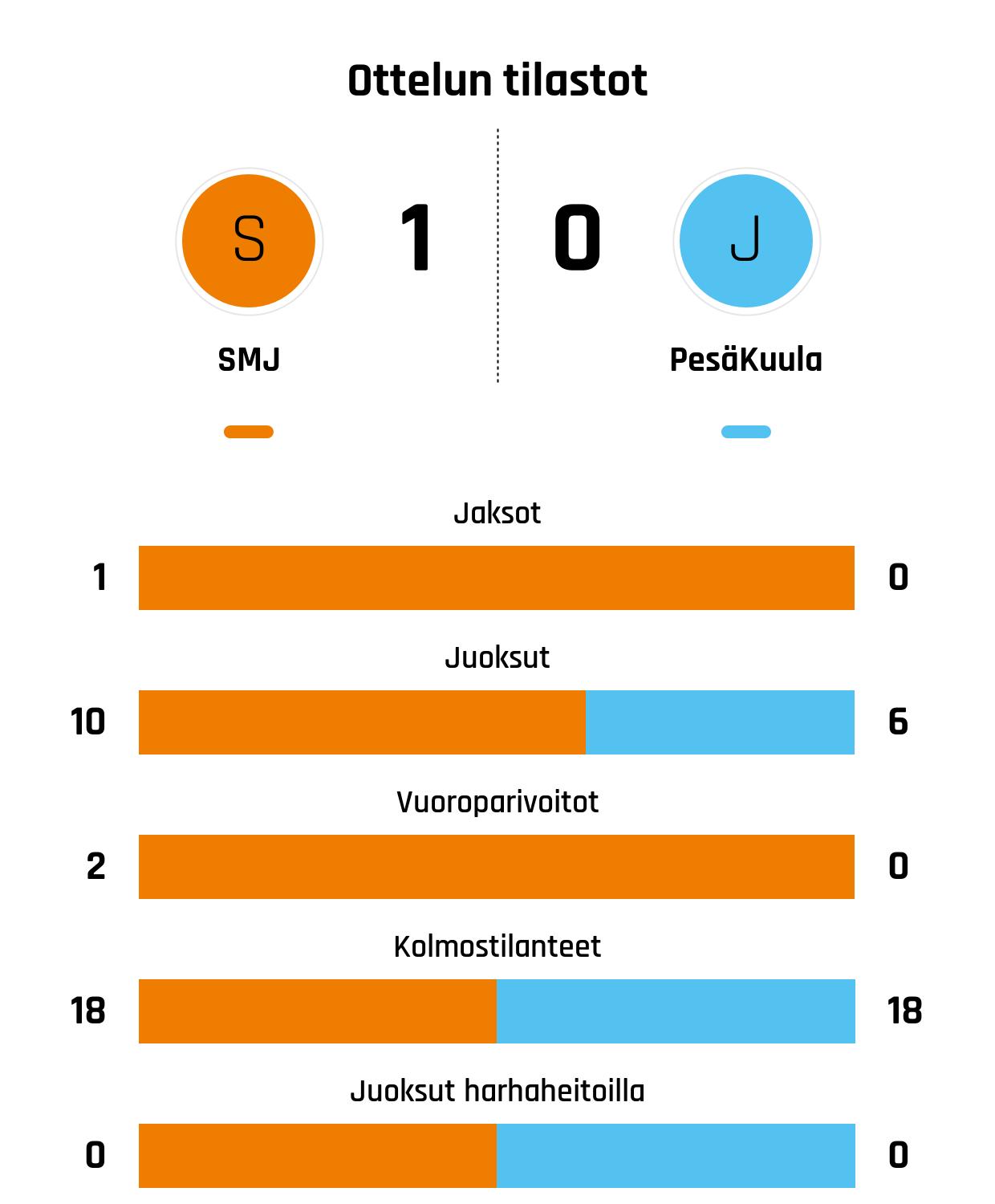 1. aloittava, Meeri Seppälä -> kunnari, 0–2 (PesäKuula)
