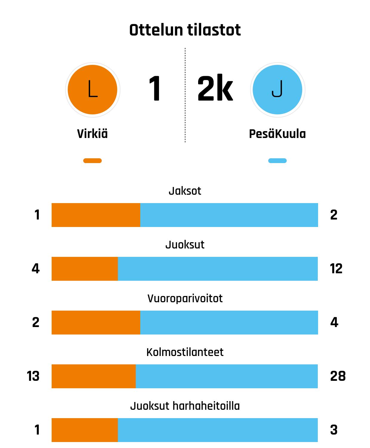 1. aloittava, Jonna Ikola -> Emmi Kangasluoma, 1–0 (Virkiä)
