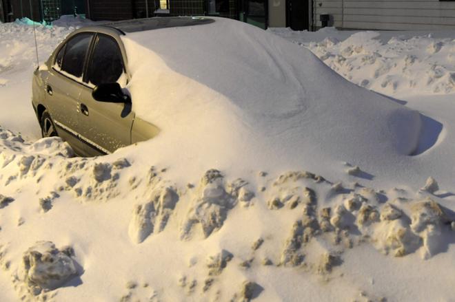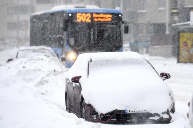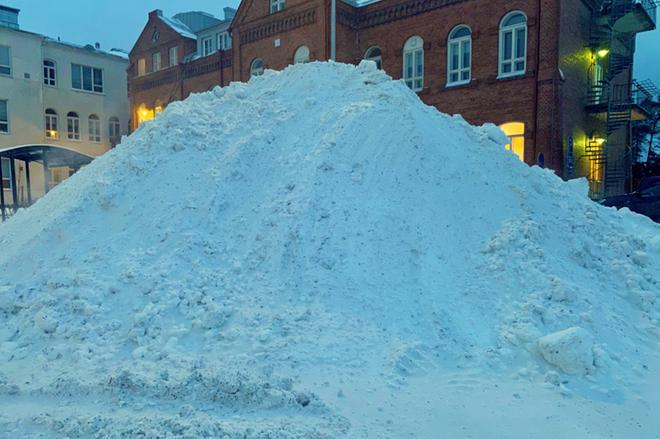 Vaasan keskustan katujen reunat täyttyvät lumesta. Kuva: Paula Kaskimaa
